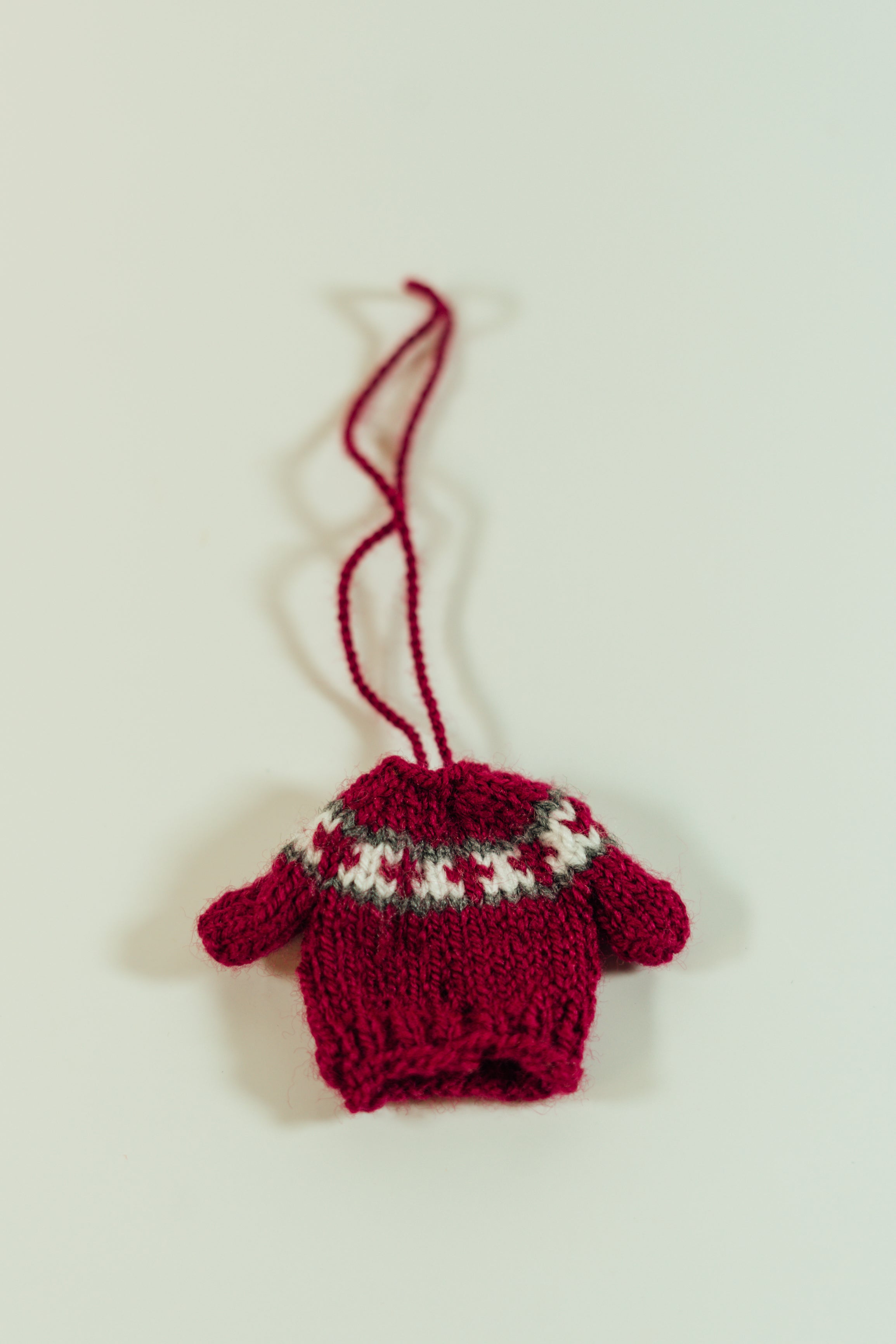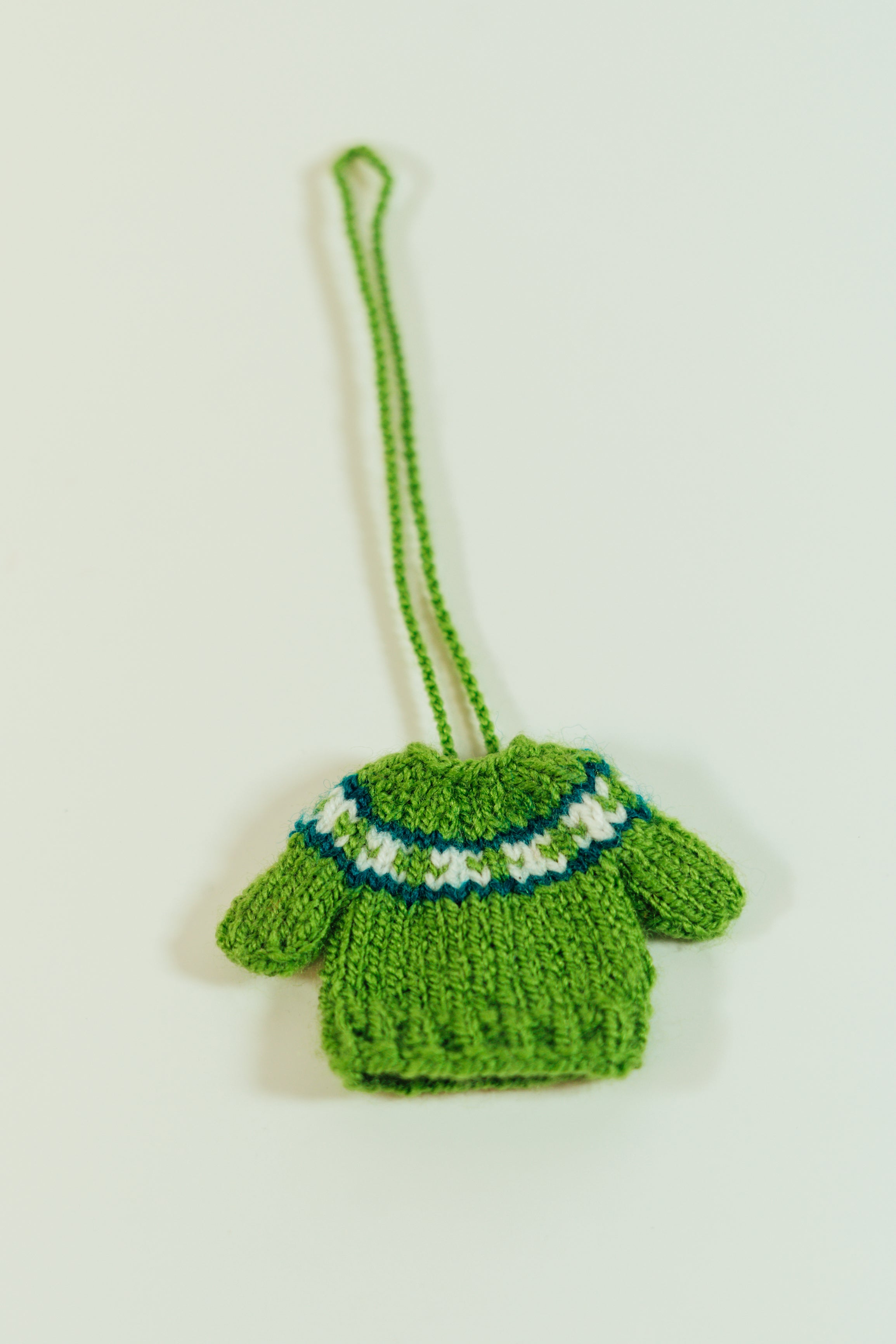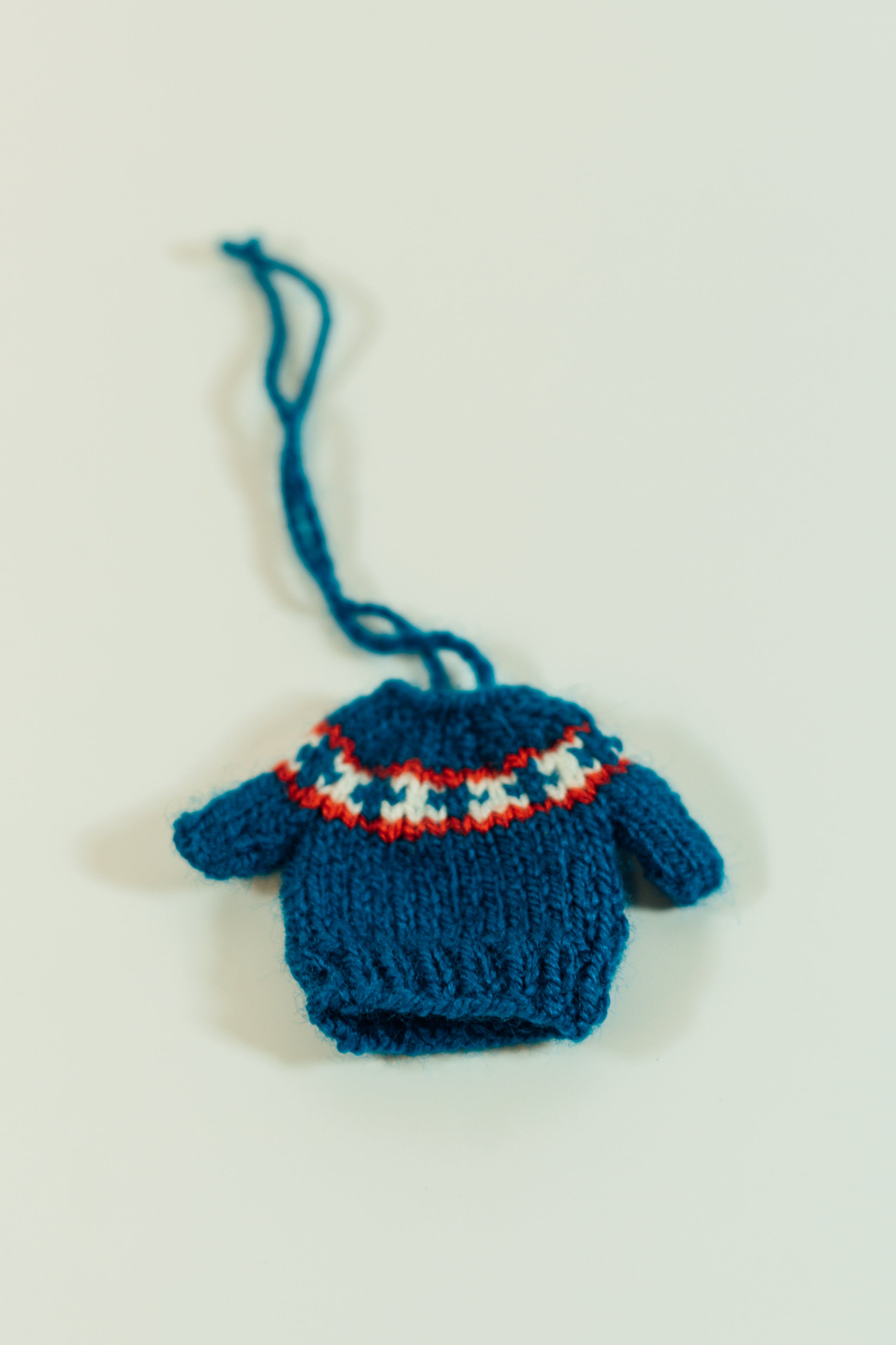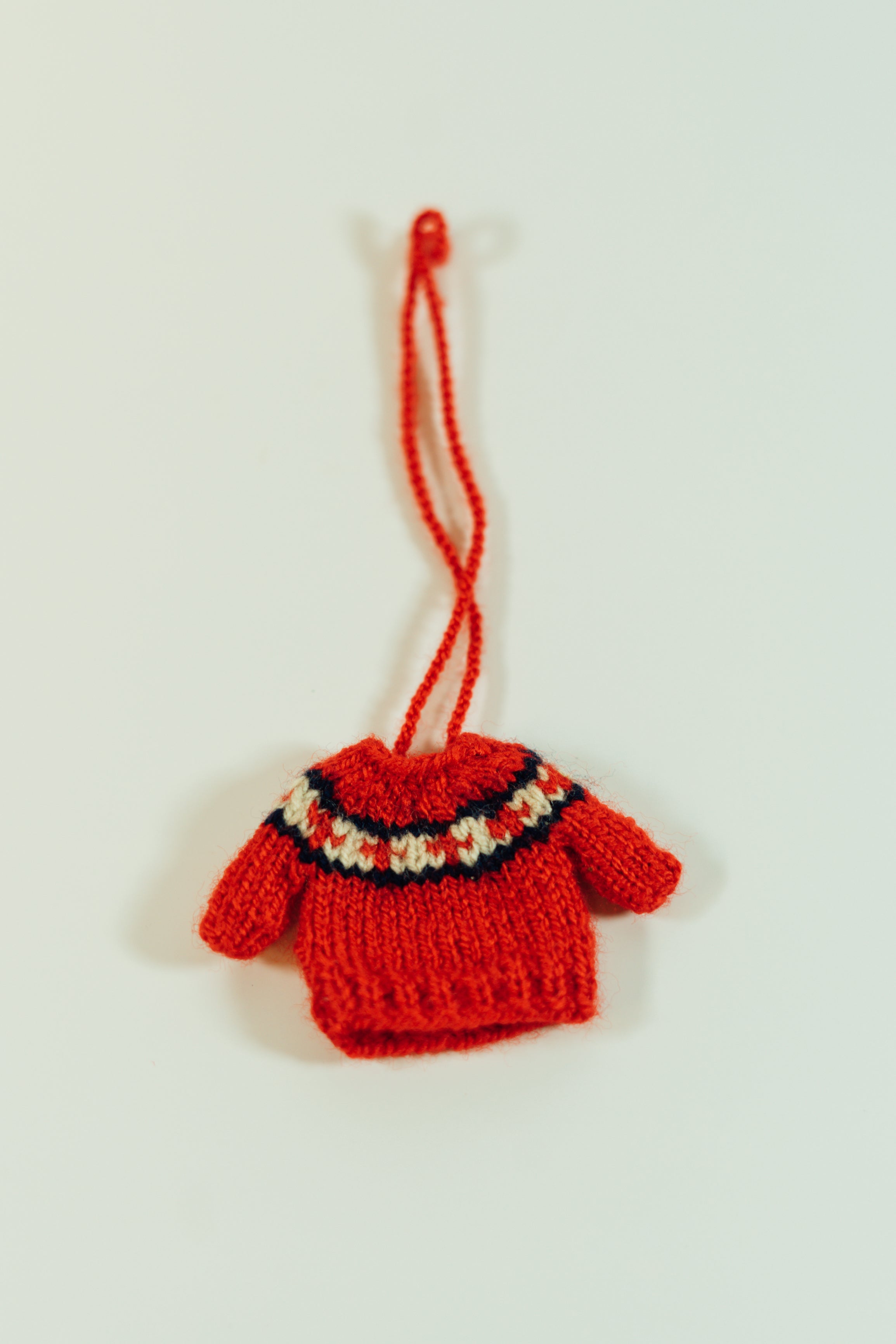 These adorable miniature sweaters are each uniquely hand knitted in the Middle East. They can be used as ornaments or to attach to just about anything you want to make cuter! Each one is slightly different in pattern and style. Body of sweater measures 5cm by 5cm and has an 11 cm hanging loop.