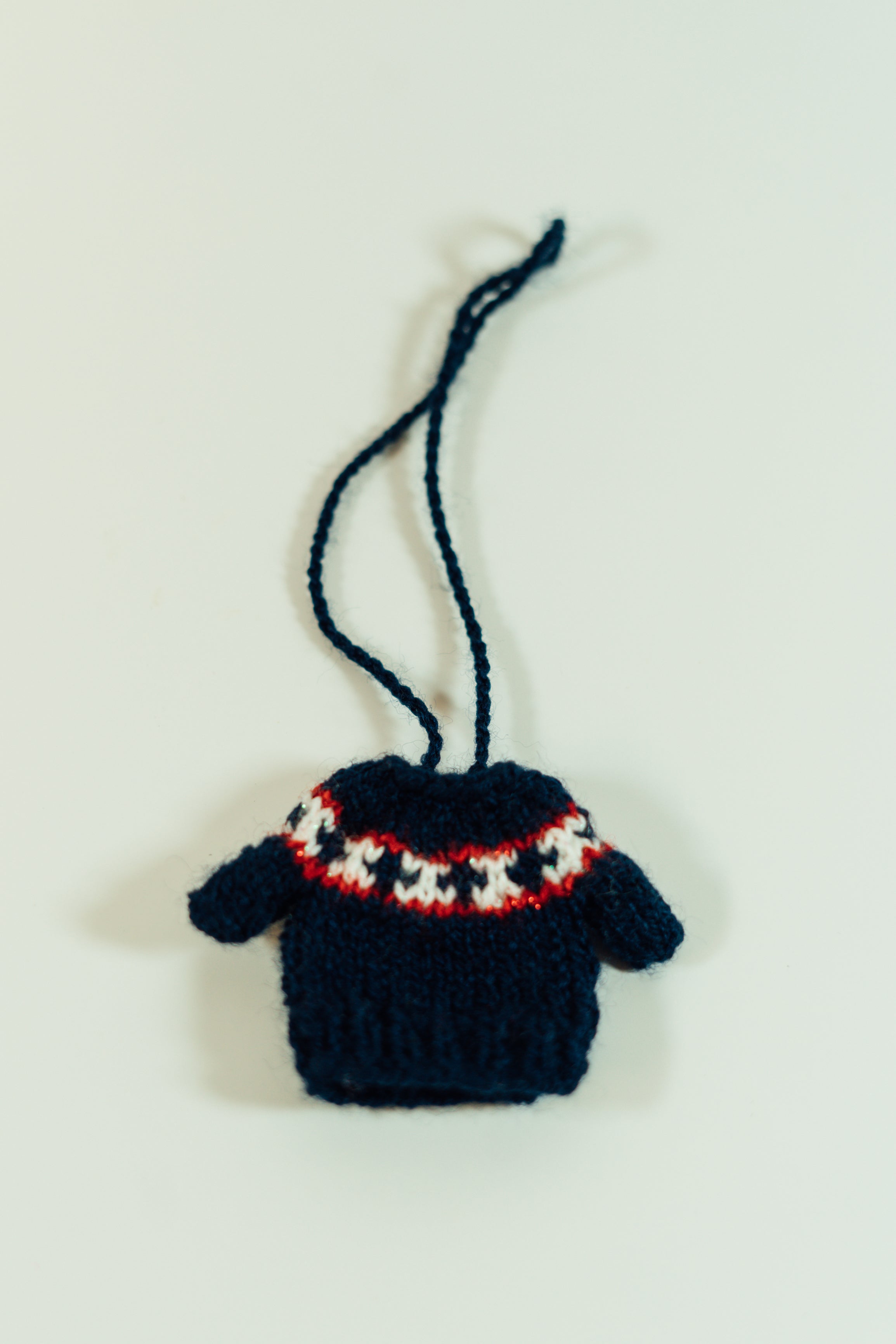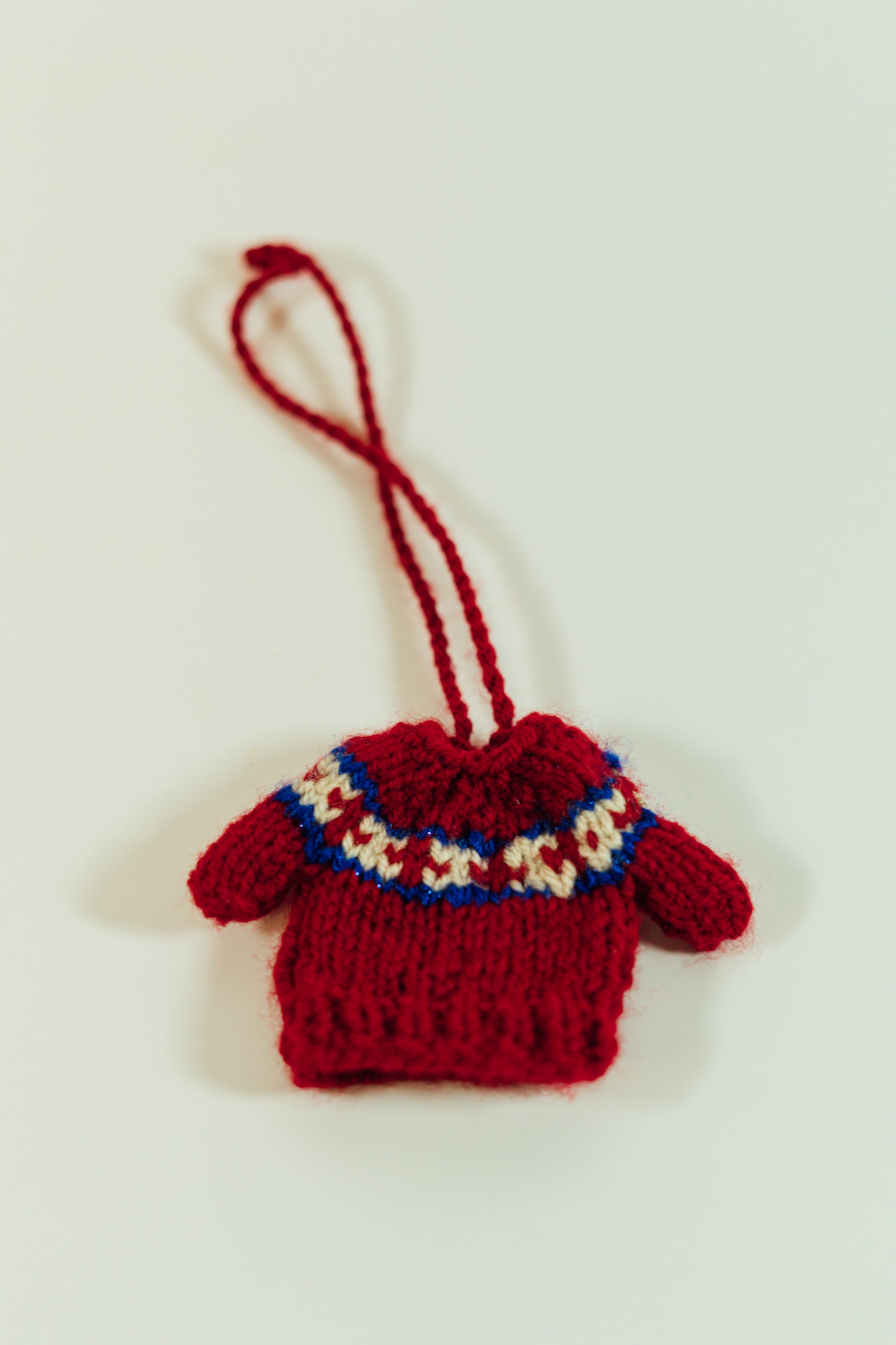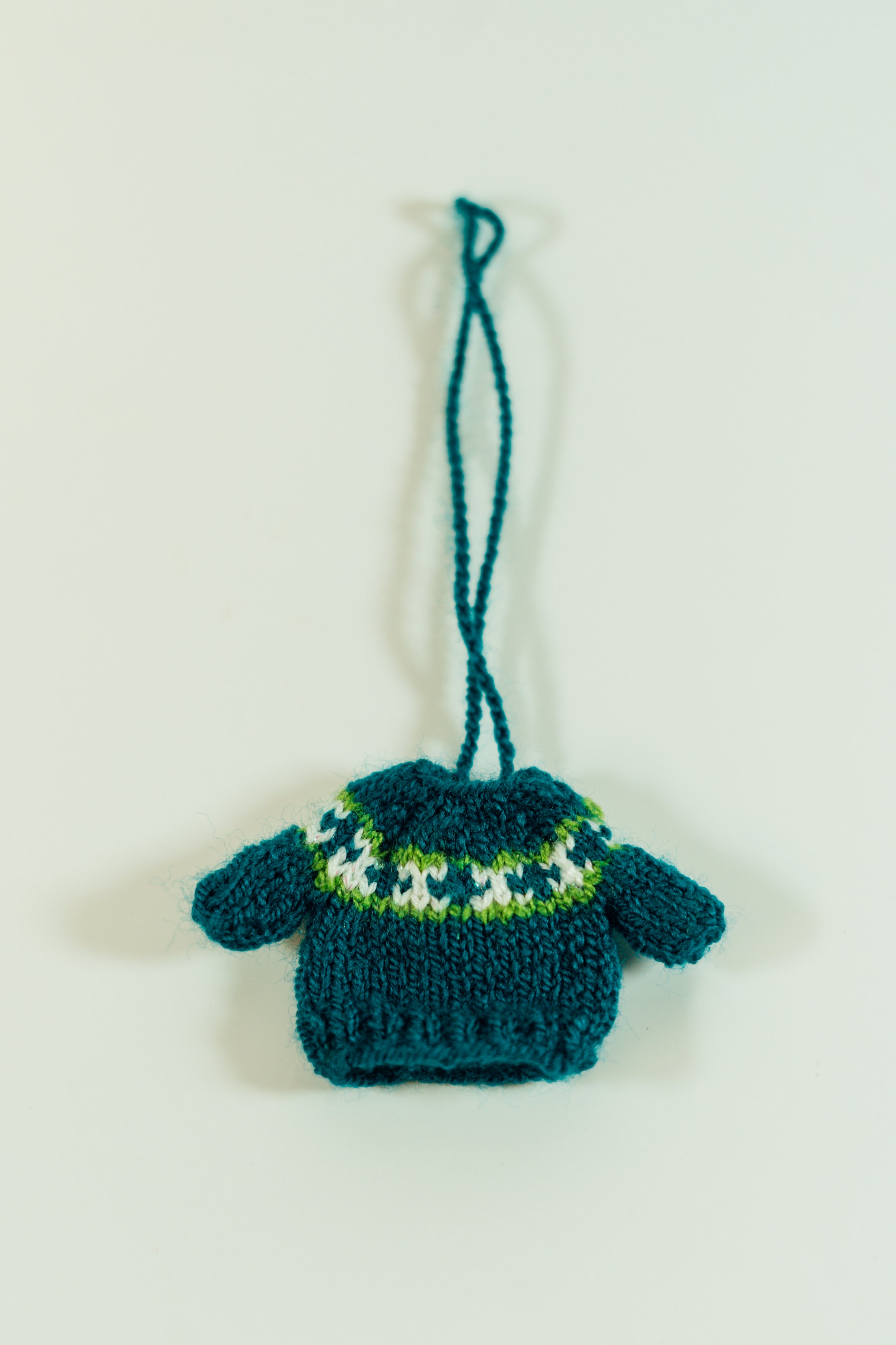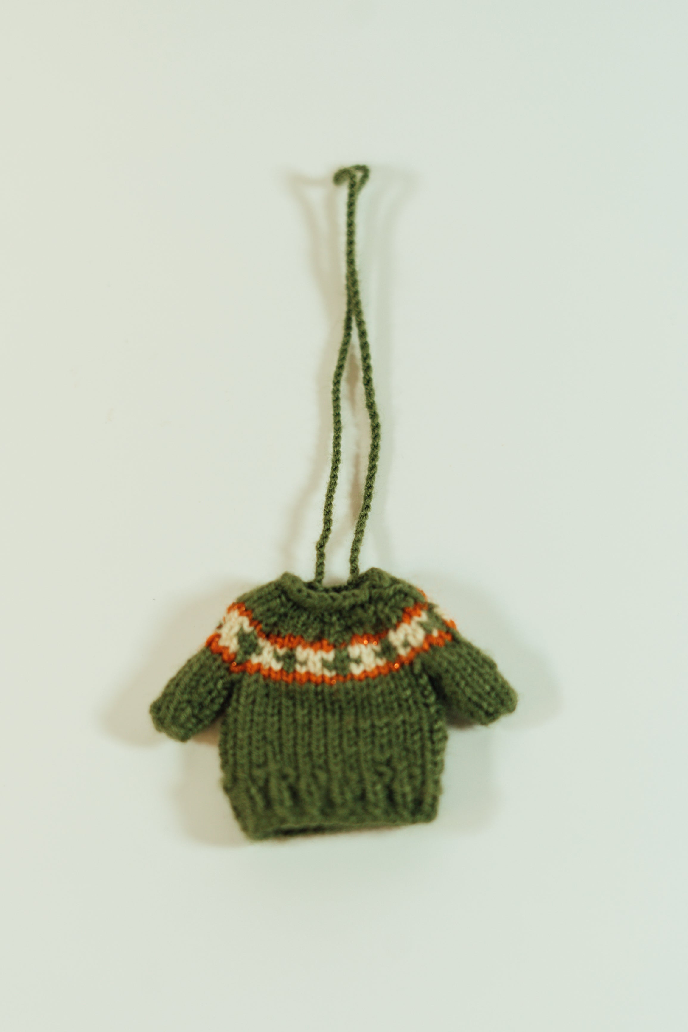 These adorable miniature sweaters are each uniquely hand knitted in the Middle East. They can be used as ornaments or to attach to just about anything you want to make cuter! Each one is slightly different in pattern and style. Body of sweater measures 5cm by 5cm and has an 11 cm hanging loop.