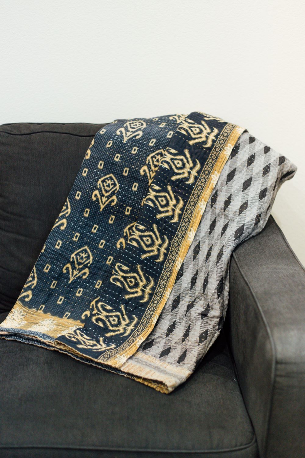 Handmade in India with traditional Kantha stitching