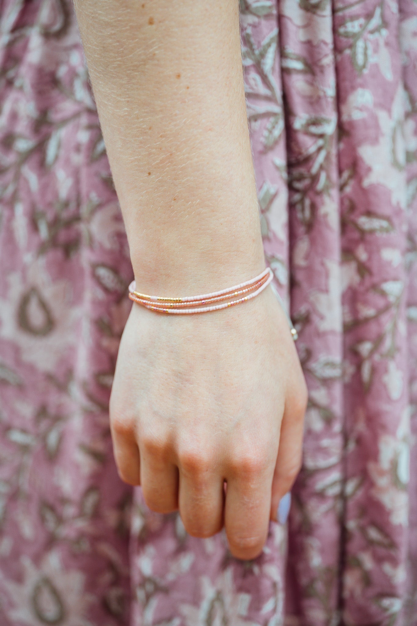 The Lola Bracelet is a handcrafted beaded piece made by artisans under fair trade practices. It features vibrant beads and a design that wraps around the wrist with an adjustable/clasp closure so it fits comfortably. Each piece has its own pattern and color palette. Colors and bead arrangements vary making each bracelet unique. It is both stylish and meaningful, crafted to add beauty to your daily wear while supporting artisan communities.