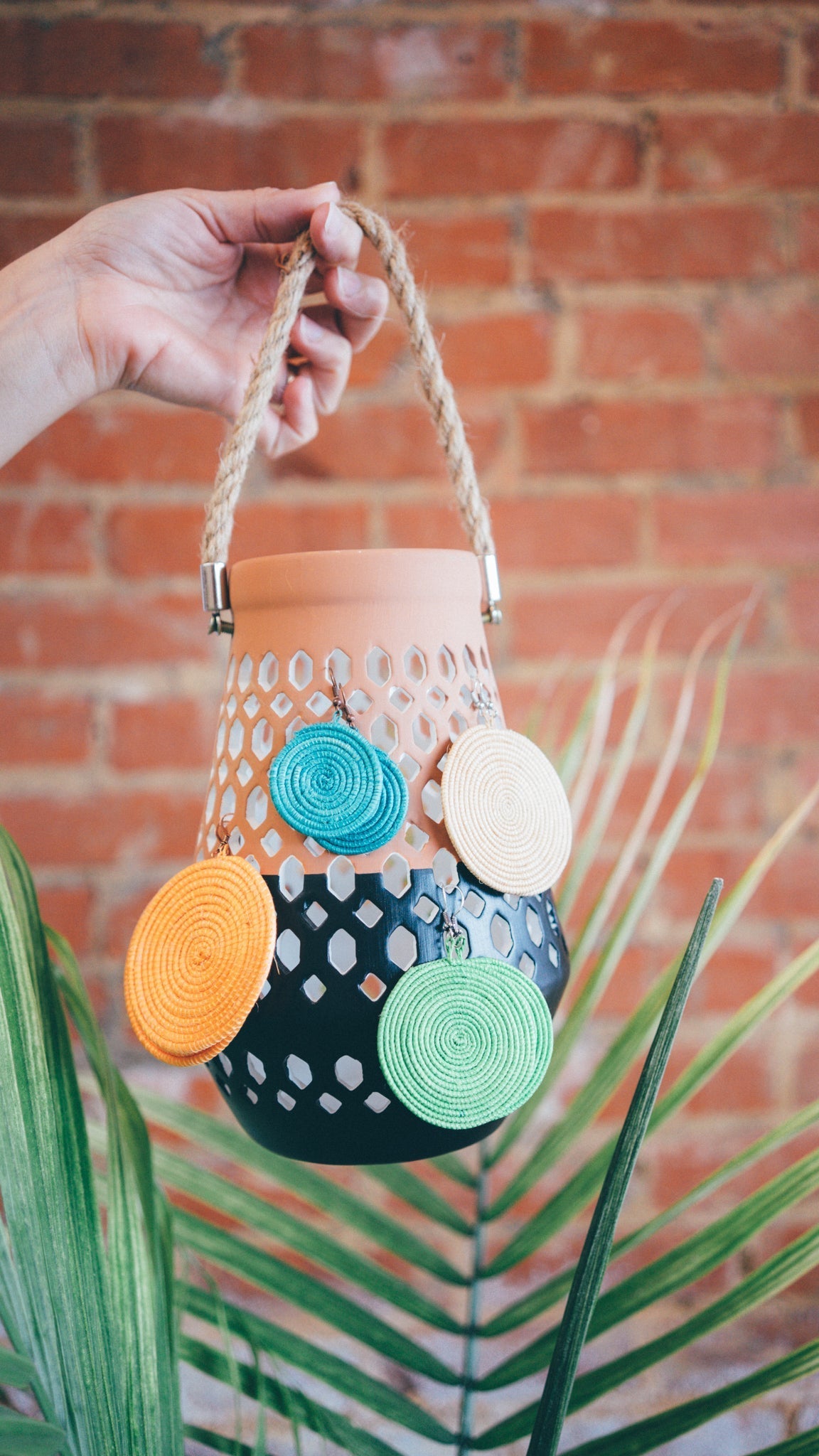 Mukisa Earrings are Hope’s Gate bestsellers, handwoven in Uganda from all natural fibers. These earrings are lightweight and comfortable for all day wear. They also double as natural oil diffusers when you apply a drop of your favorite scent. Available in Small (approx 1½ in), Medium (approx 2½ in), and Large (approx 2¾ in). Each pair is made under fair trade conditions so artisans receive fair wages and your purchase supports meaningful craftsmanship.
