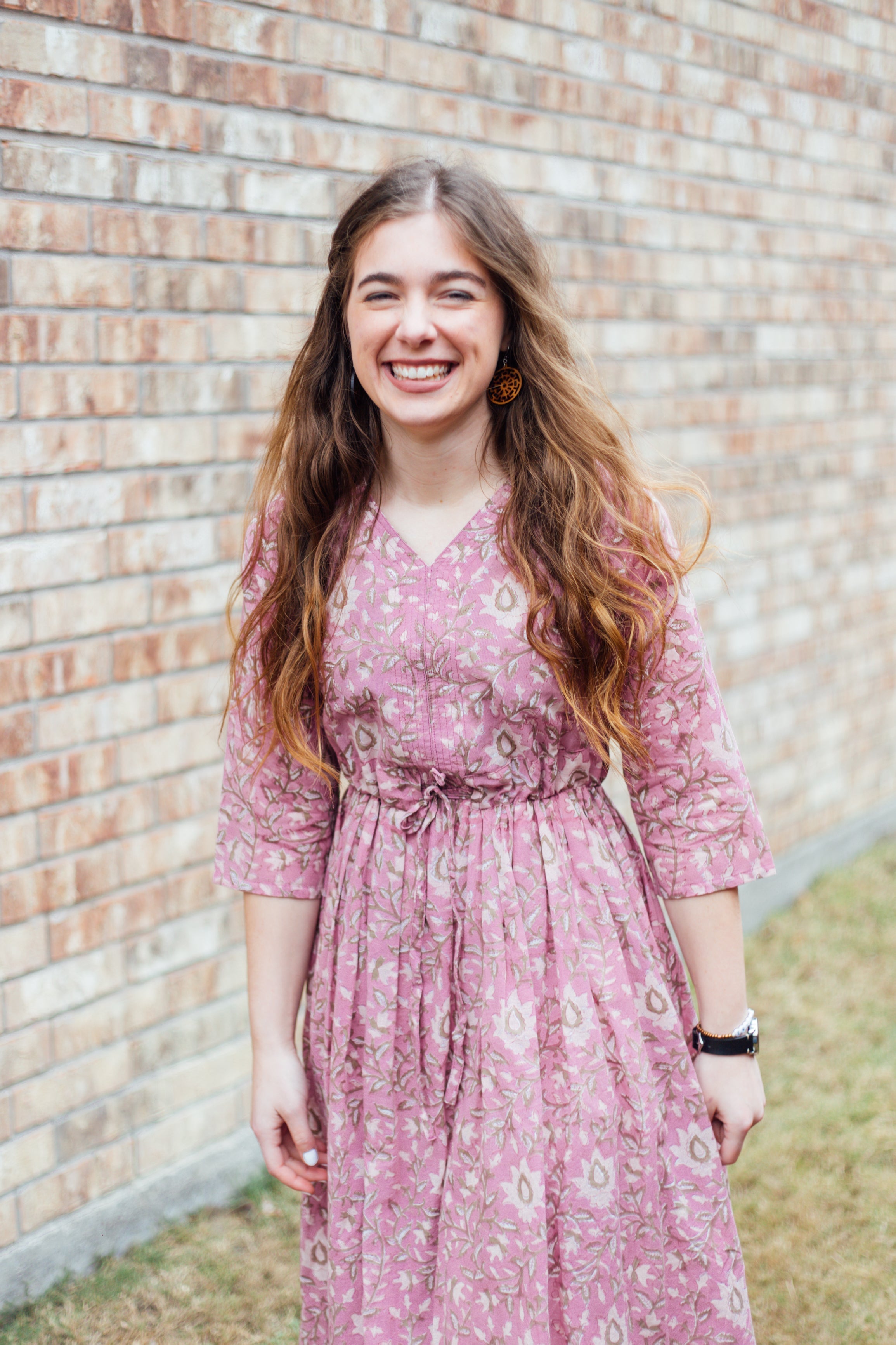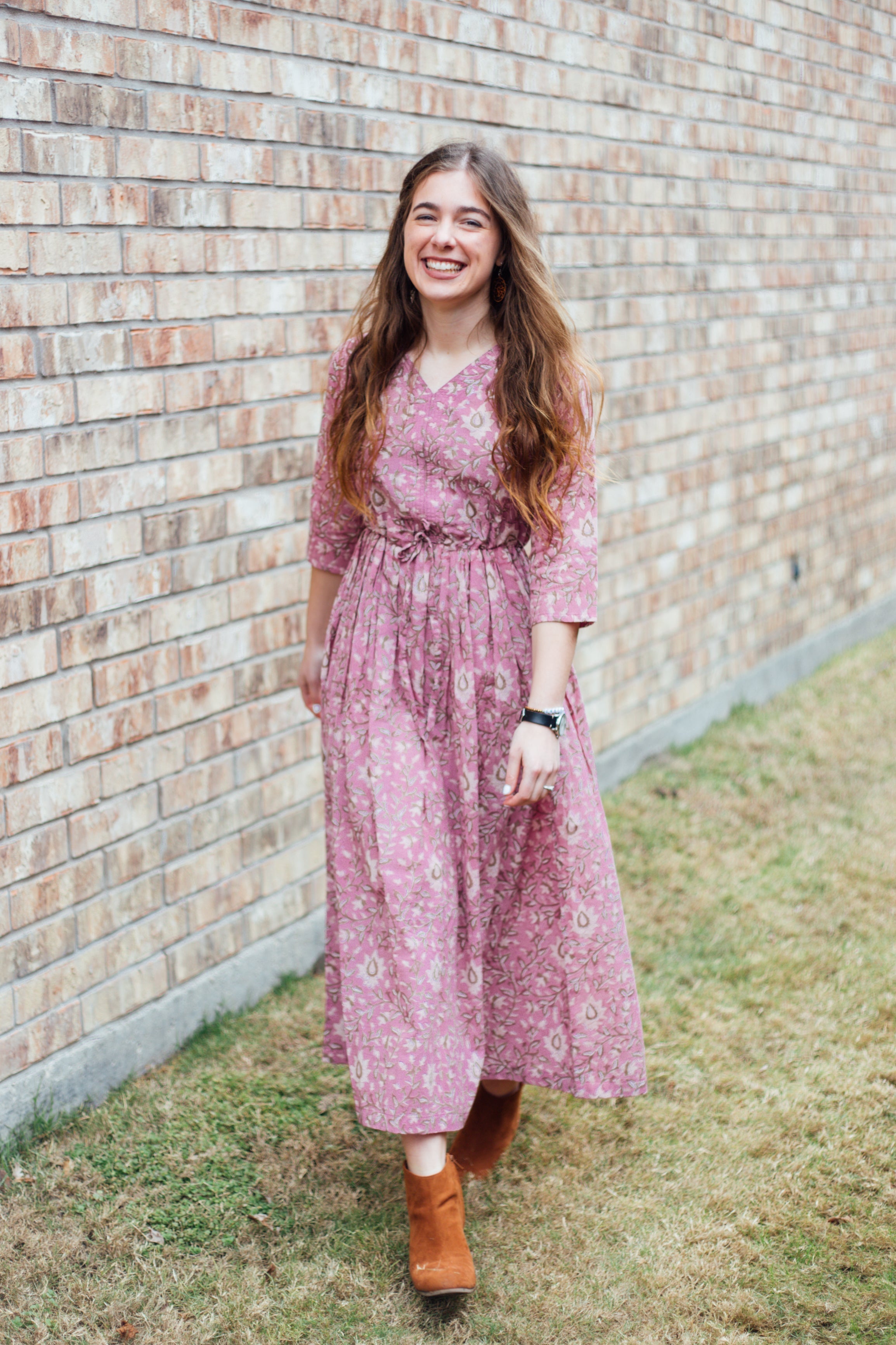 Elevate your wardrobe with the Priya Dress, a handcrafted long dress made from 100% Indian cotton fabric. Handblock printing is an Indian traditional printing skill by artisans, using crafted wooden pieces to create beautiful floral patterns. This lightweight and flowy dress keeps you cool and comfortable all day. Note: These dresses run tighter in the chest area, so size up as needed.