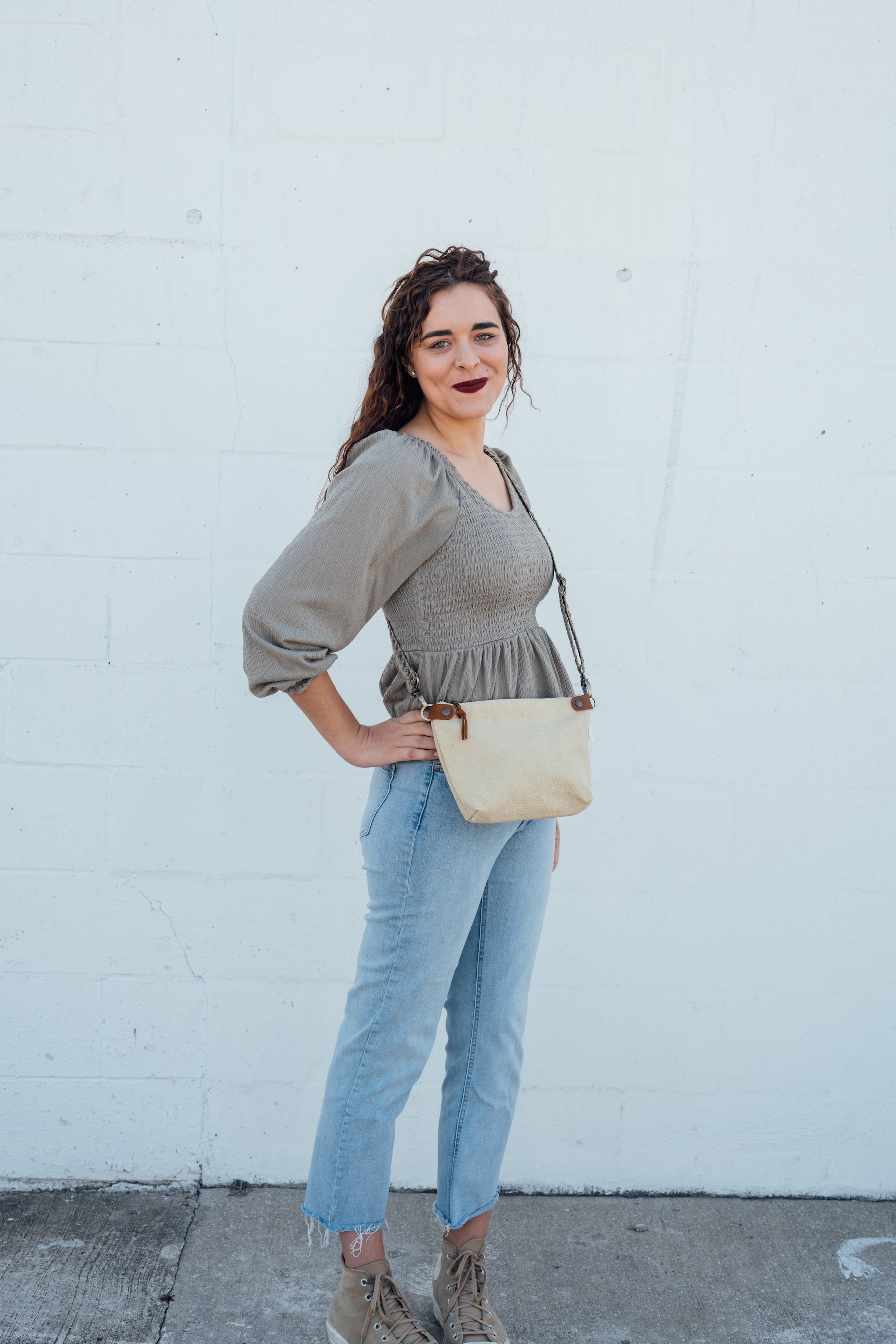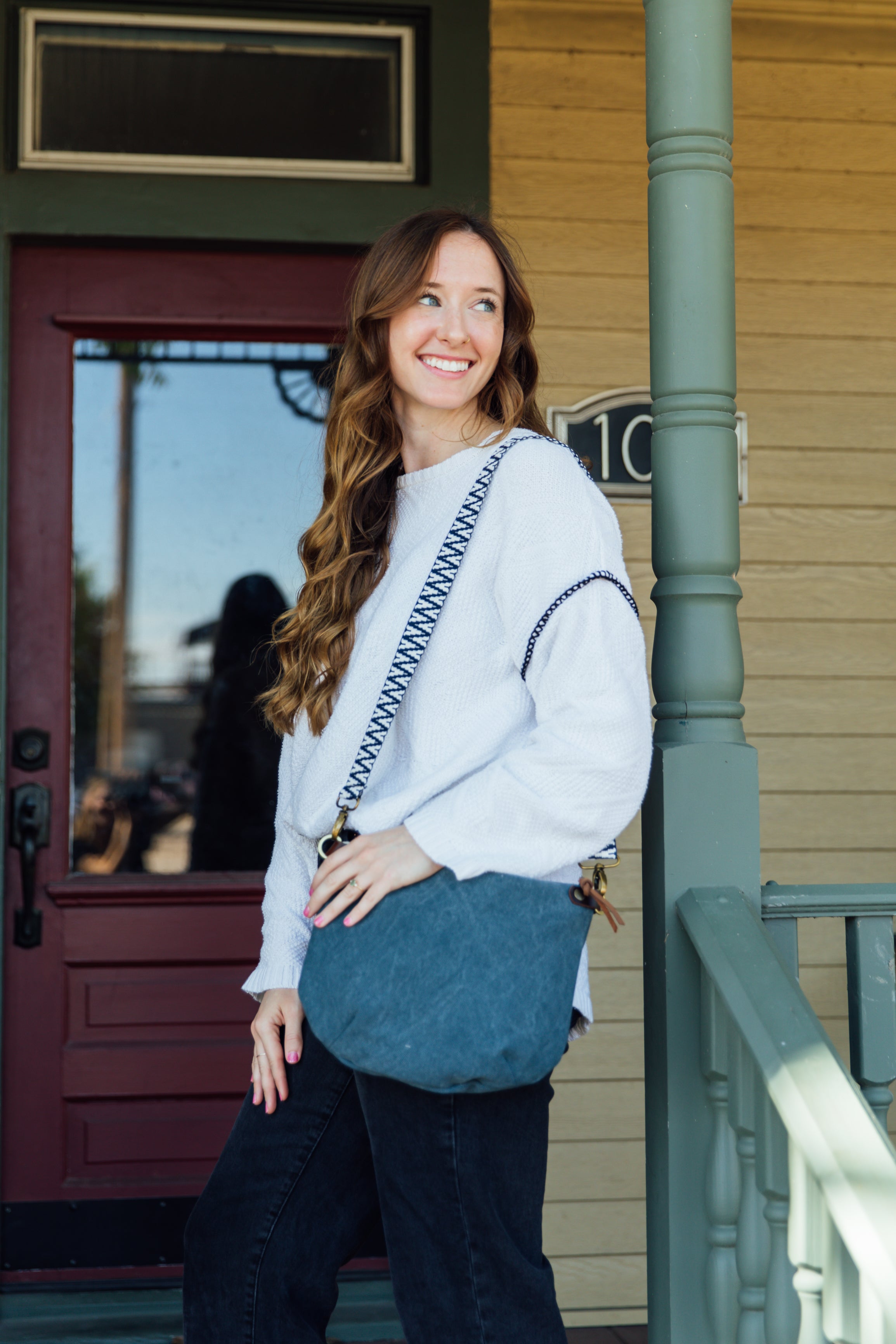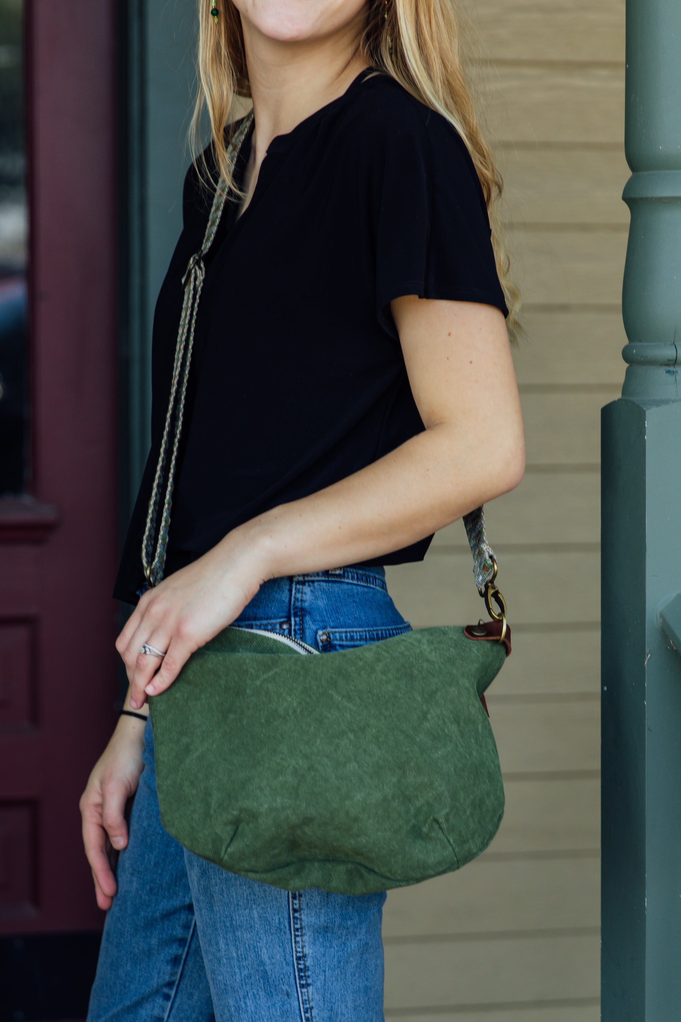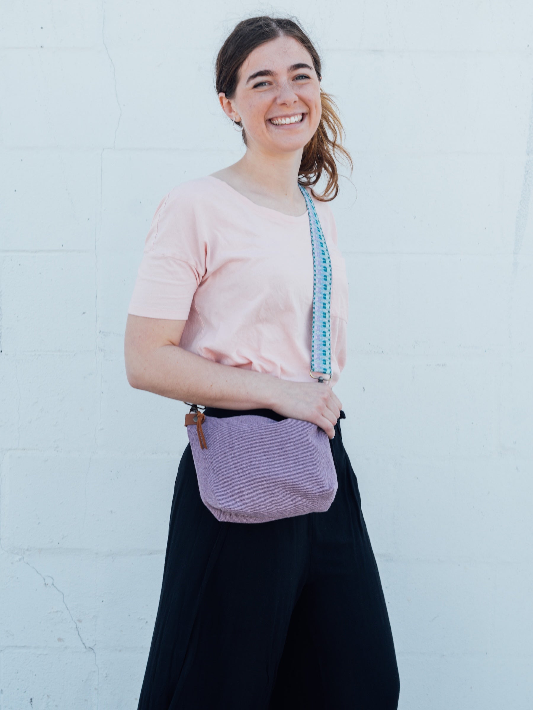 These sturdy canvas purses can be worn as a crossbody or shoulder bag. Each one has a vibrant woven adjustable strap. Interior zippered pocket, bronze hardware, and leather finishings. Handmade in Thailand.