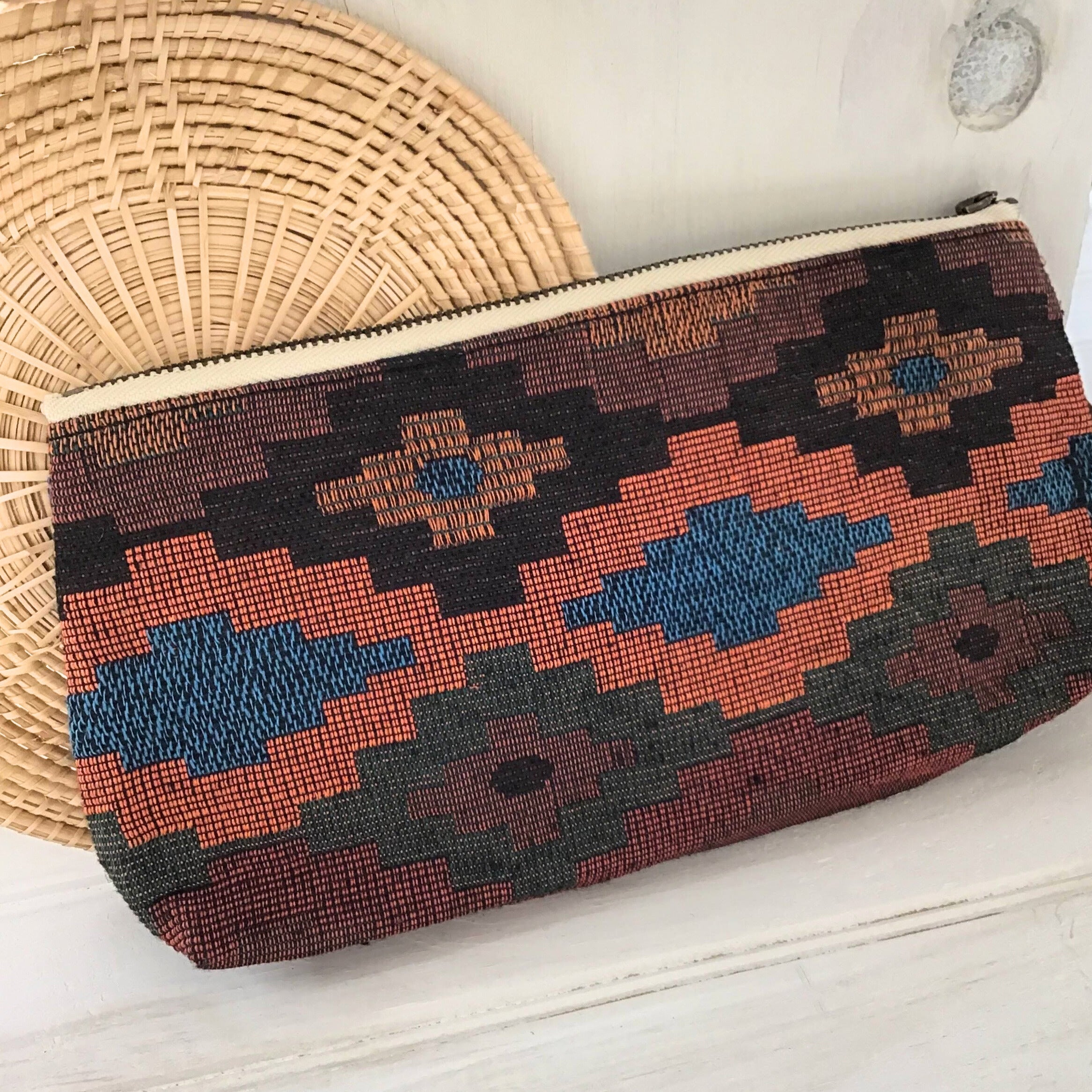 The Thai Cosmetic Bag is a compact and stylish accessory, handcrafted in Chiang Mai, Thailand, by skilled women artisans. Measuring 9.5 inches wide by 5 inches deep, it offers just the right amount of space for your makeup essentials. The bag features a sturdy metal zipper and a leather tassel, combining functionality with flair. Each piece is made under fair trade practices, supporting ethical sourcing and empowering communities. Your purchase helps provide fair wages and promotes sustainable craftsmanship, allowing you to carry both beauty and purpose wherever you go.