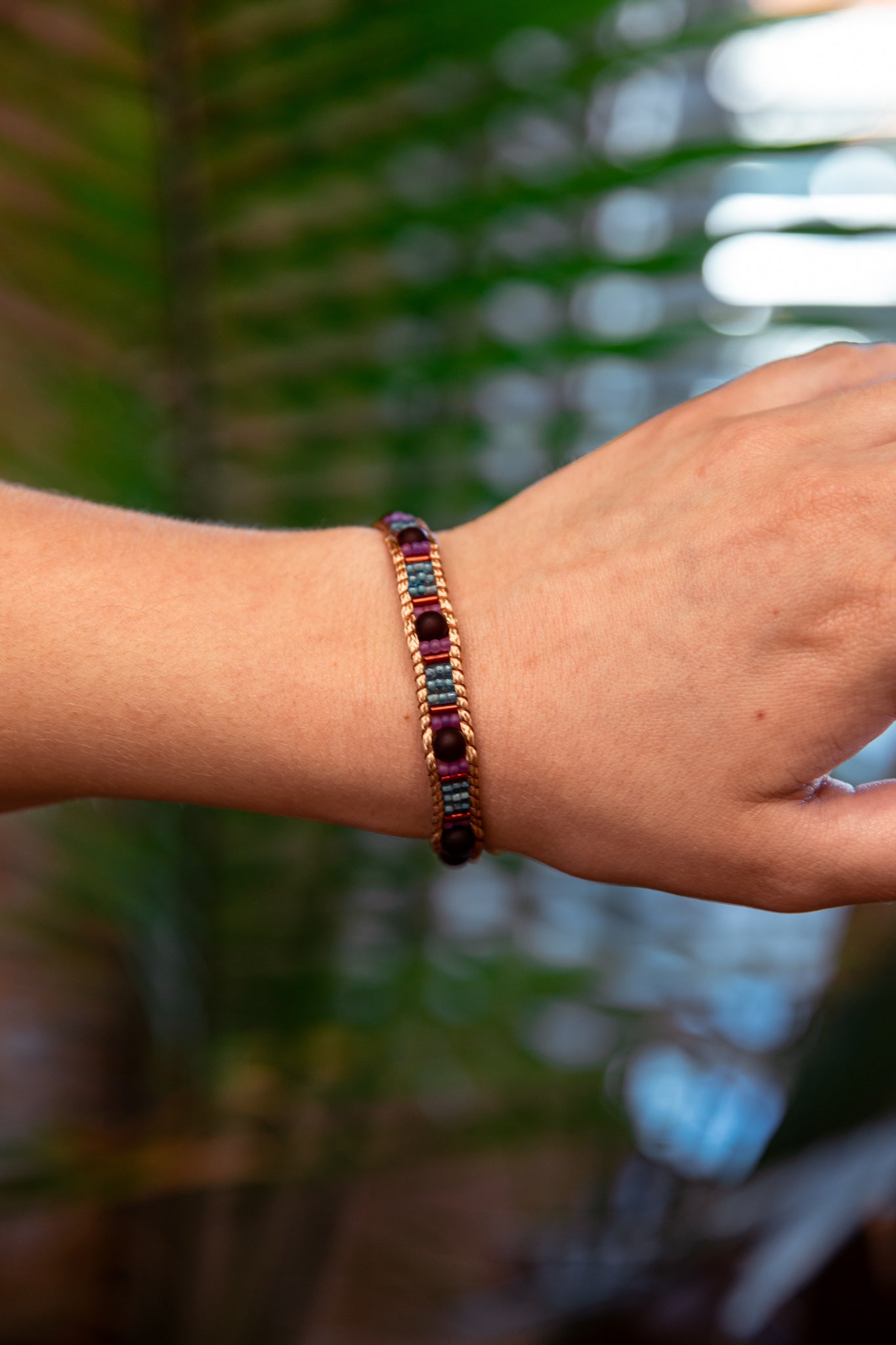 The Tibetan 1x Wrap Bracelet is a unique, handmade accessory crafted by Tibetan artisans using natural stone and glass beads strung on durable waxed cord. The 1x wrap design wraps around once and fastens with a decorative button closure, making it easy to wear. Colors, bead patterns, and fabric may vary so each bracelet is one of a kind. With earthy tones and rich handcrafted detail, this bracelet adds character to everyday style while supporting fair trade and dignified artisan work.