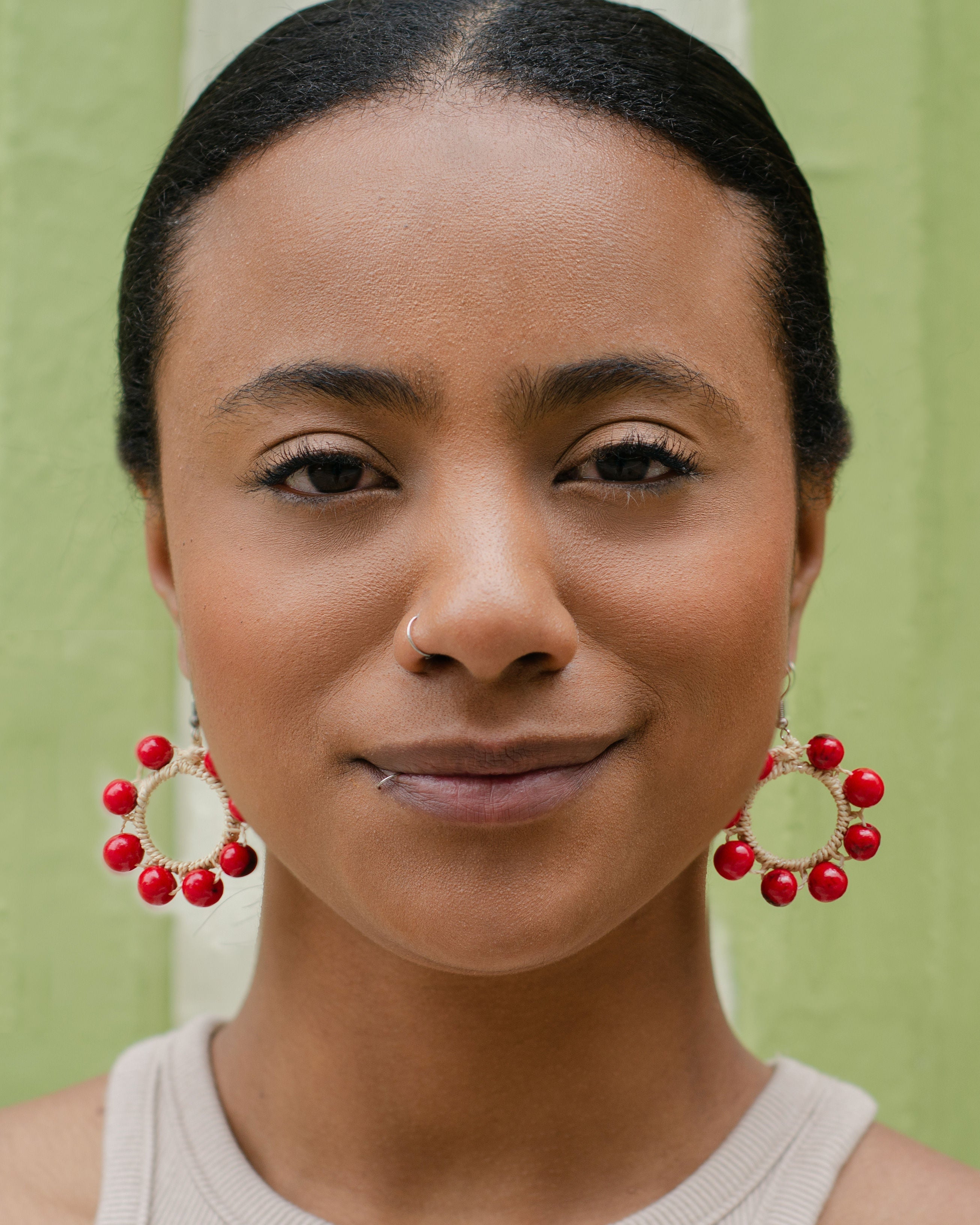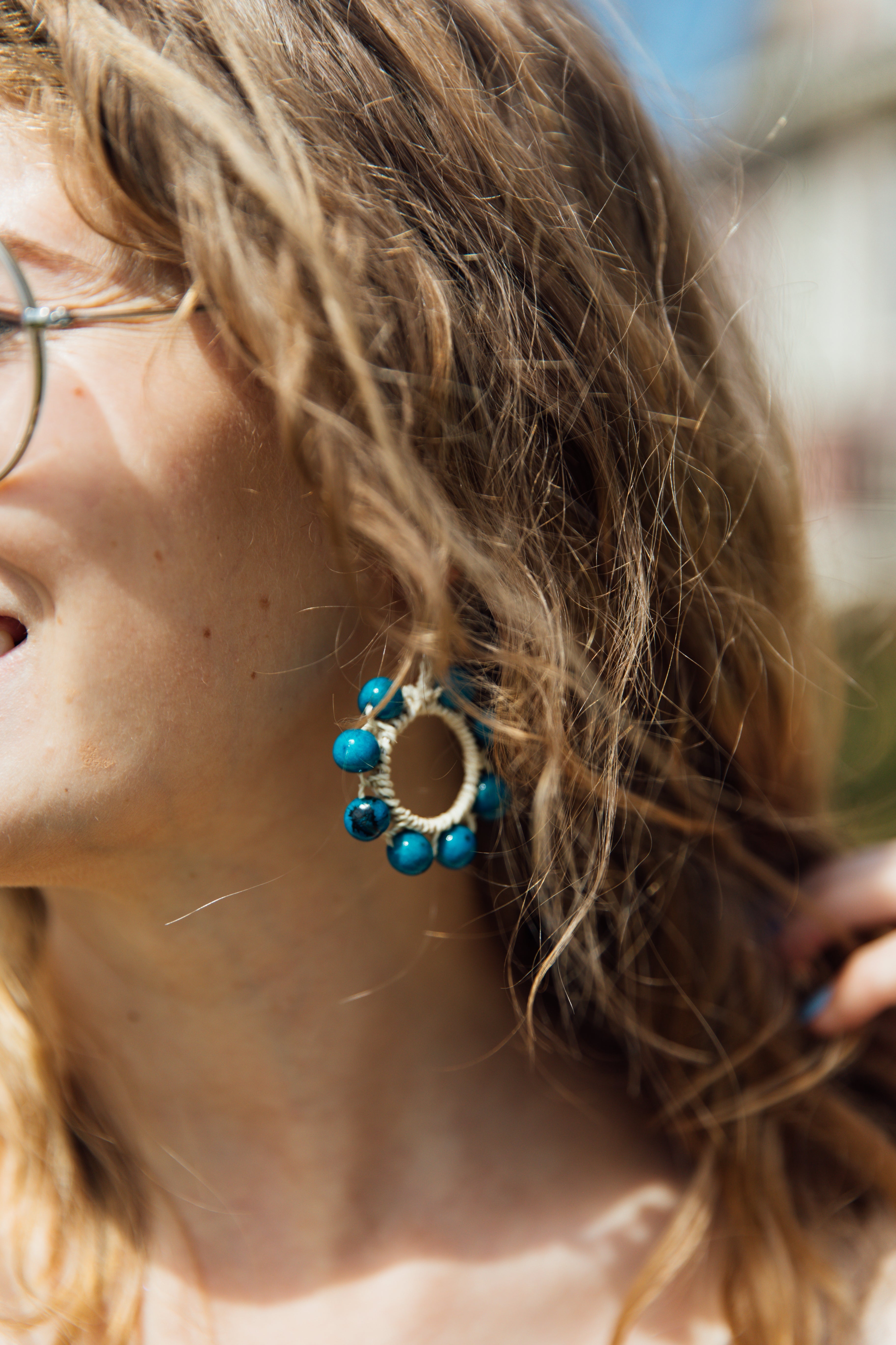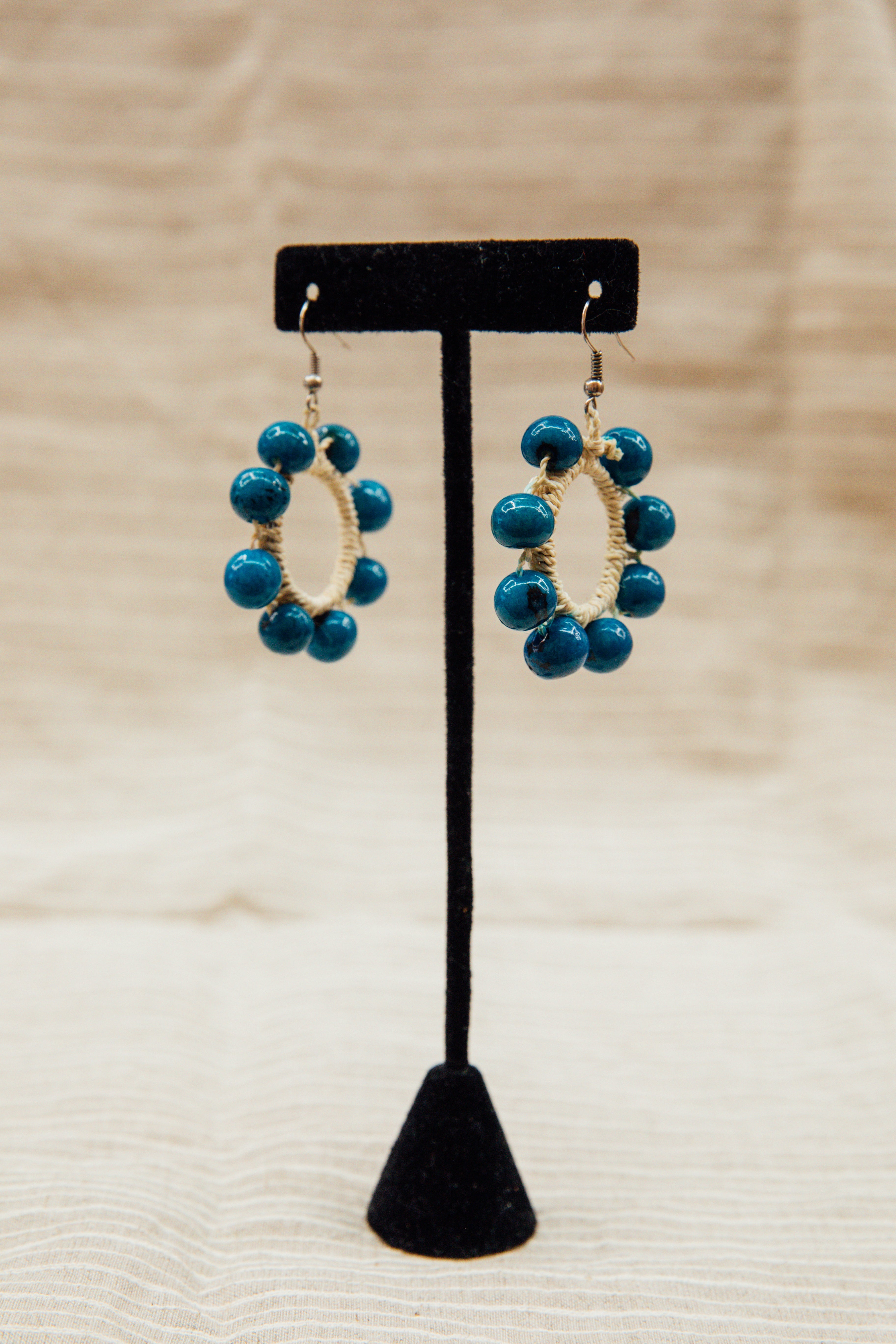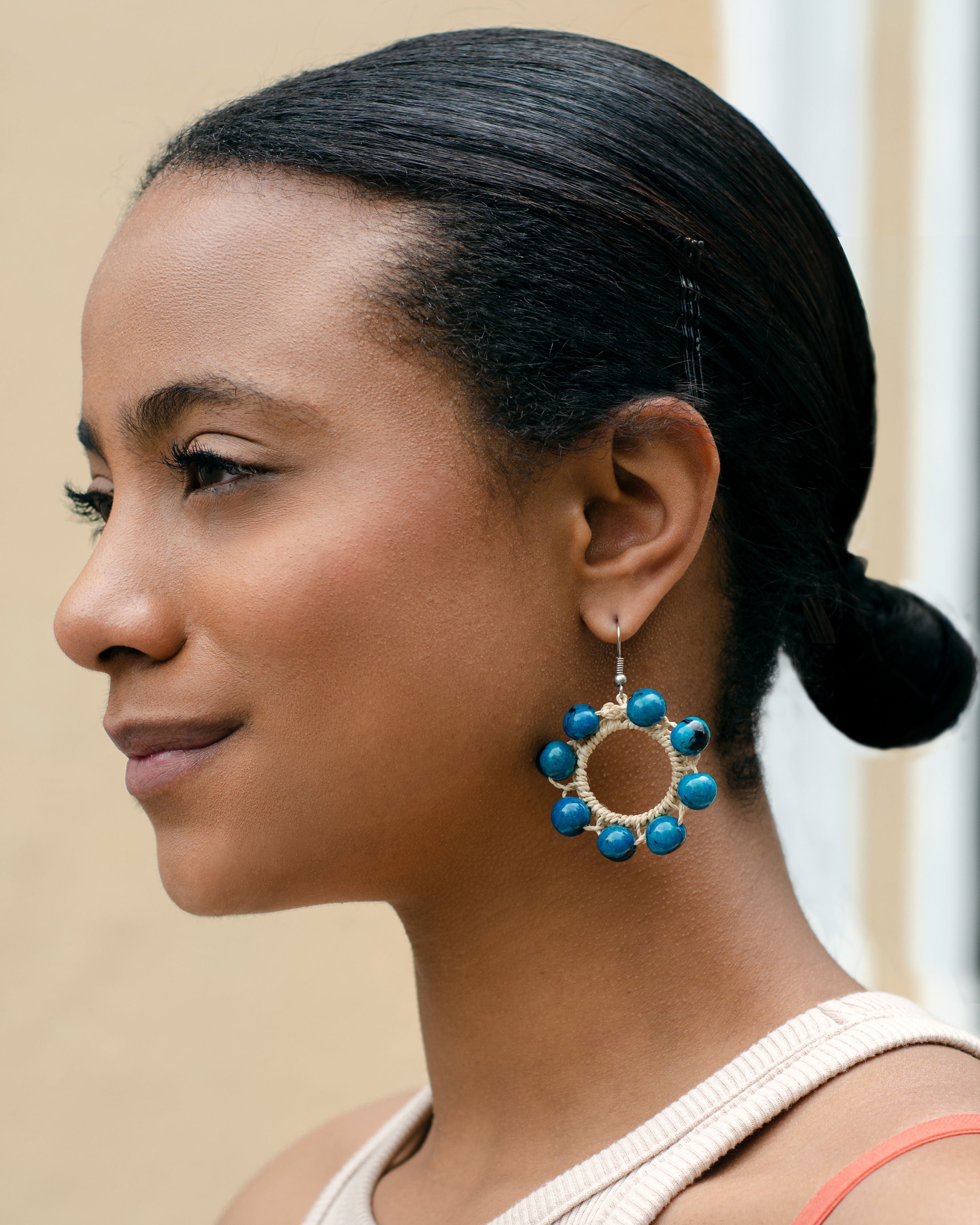 These beautiful earrings are handmade by our artisans in Colombia. The materials used to make them are locally sourced, including Colombian Acai berries and palm fibers. They are statement piece, great for bringing personality into your next outfit. They are 1.5" in diameter.