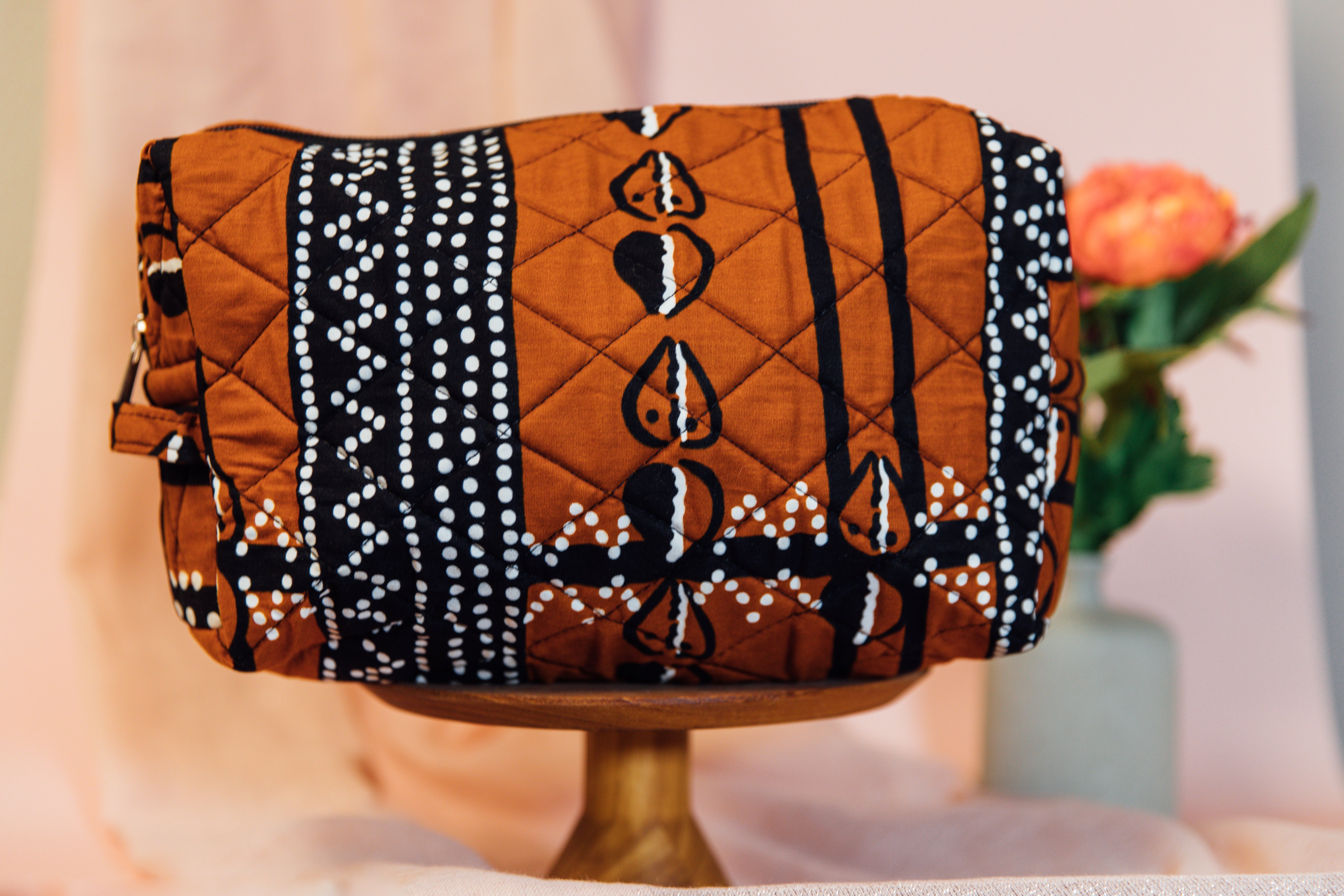 The Ugandan Cosmetic Bag is a vibrant and practical accessory, handcrafted in Uganda from quilted African fabrics. Measuring 9 inches long, 7.5 inches high, and expanding to 3 inches wide, this pouch is perfect for travel or slipping into a tote bag with ease. Each bag is sewn with care and reflects the artisan’s skill and cultural heritage. Handmade under fair trade practices, your purchase supports artisan livelihoods and fair wages, helping to build sustainable livelihoods and fund education through Hope’s Gate’s mission, so you can carry both beauty and purpose every day.